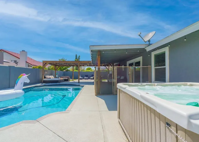 Situada a uma distância de 3.5 km de Thunderbird Paseo Park, a pousada New King Beds Pool Hot Tub Outdoor Fireplace Lexington Place dispõe de pátio com vistas para o jardim. Com vistas para piscina privada, esta propriedade convida os hóspedes a visitar o Complexo Desportivo de Peoria, localizado a 10 minutos de distância de carro.